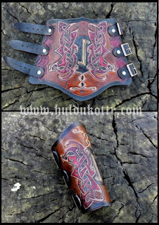 Eihwaz bracer. Dragons and knotwork self designed by Hulduköttr.