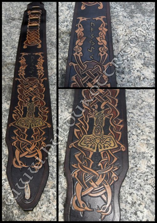 Grimmitha (In reconstructed ancient Gothic "Fury"), design and guitar strap for Spain. This time the customer did not wanted the exclusive ownership of this design, so we can use it again, as you can see at both sides of this site, with minor changes on it ;)